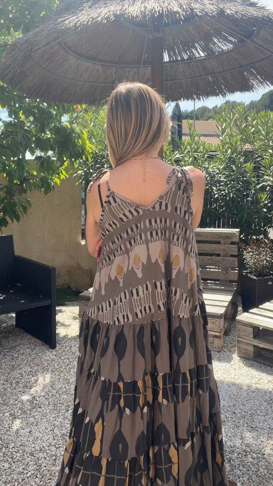 ROBE LONGUE CHOCOLAT/NOIRE/JAUNE