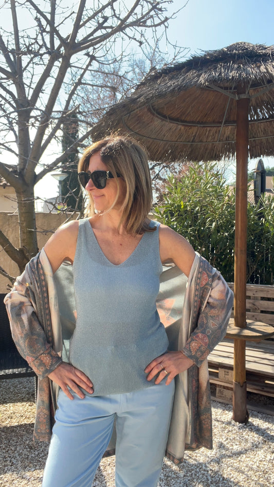 TOP BRETELLE PAILLETE BLEU