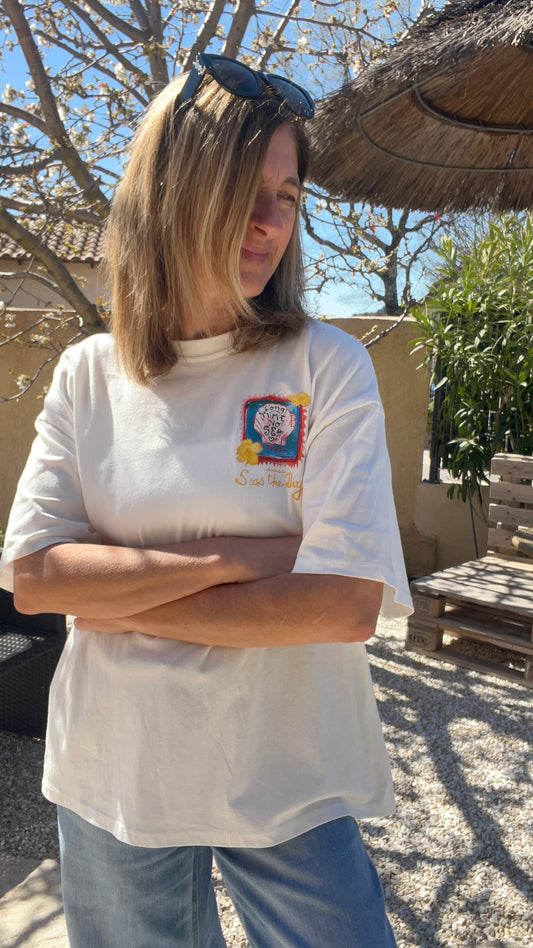 TEE-SHIRT BLANC COQUILLAGE "SEAS THE DAY"