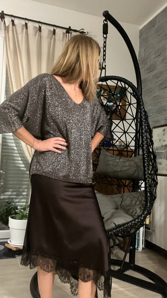 JUPE LONGUE CHOCOLAT ASYMETRIQUE