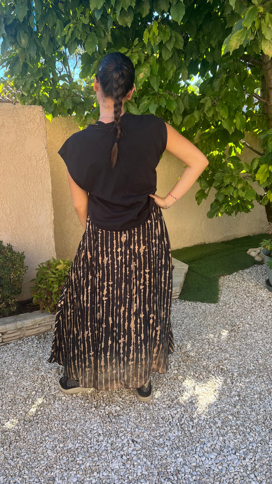 JUPE LONGUE CAMEL/NOIR "VACHE"