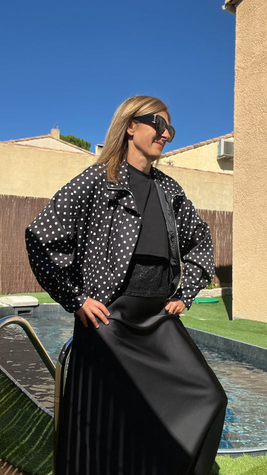 JUPE LONGUE BLANCHE "POIS NOIR"