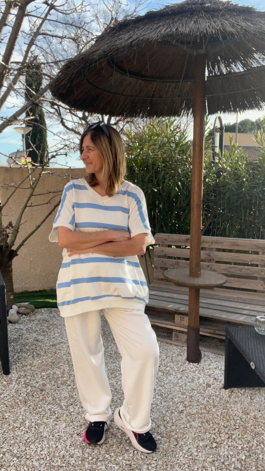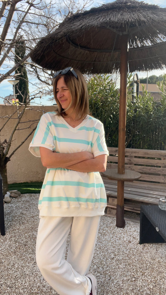 TEE-SHIRT/TUNIQUE RAYĂ BLEU TURQUOISE