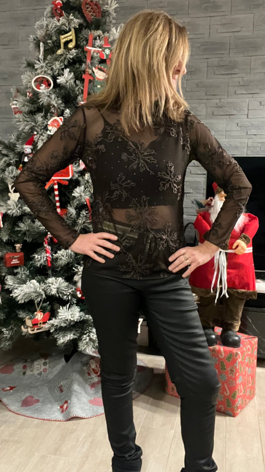 TOP CHOCOLAT EN DENTELLE MANCHES LONGUES
