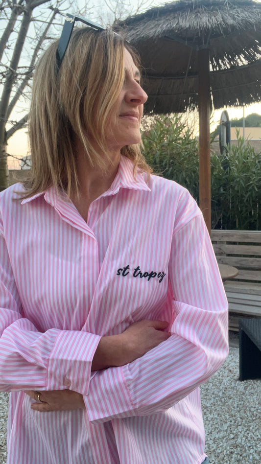 CHEMISIER RAYE ROSE/BLANC "SAINT-TROPEZ"