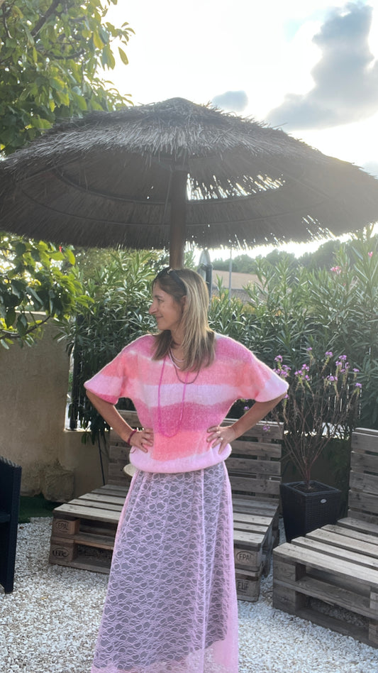 PULL ROSE DEGRADE MANCHES COURTES "MULTICOLORE"