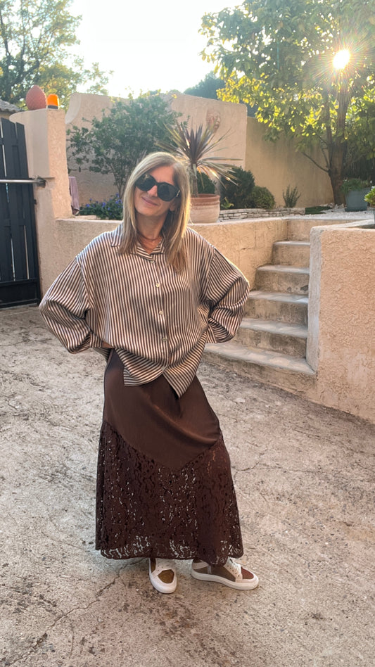 CHEMISIER RAYE CHOCOLAT/BEIGE "SOIE"