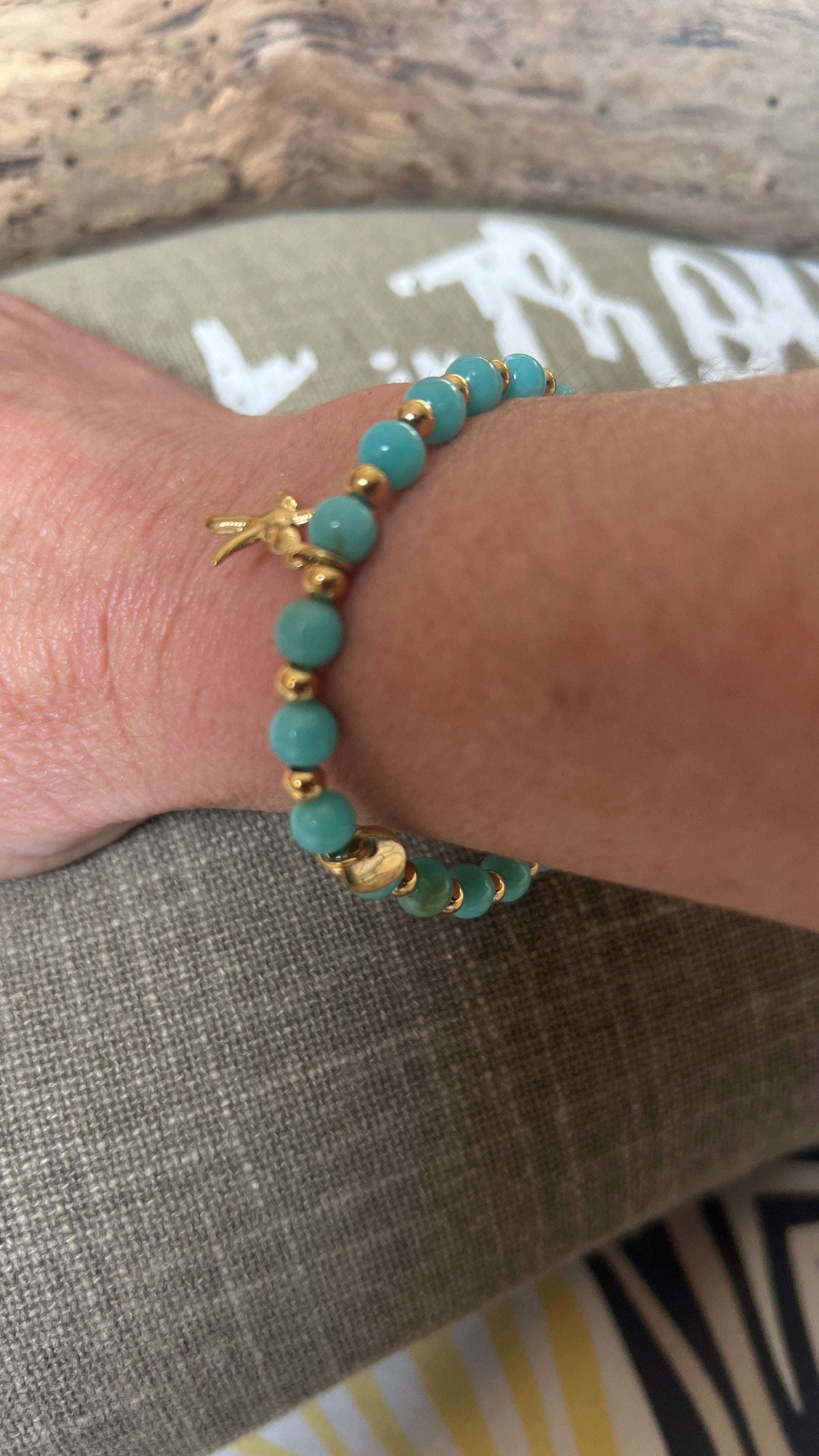 Douceur et esprit bord de mer se rencontrent dans ce bracelet délicat composé de petites perles bleues turquoises ou, blanc ou multicolores ou vert d'eau, rose pâle, jaune pâle avec de mini perles dorées et d’un médaillon doré, symbole d’évasion et de liberté. Ces couleurs évoquent les couchers de soleil sur la plage et les instants précieux de l’été.