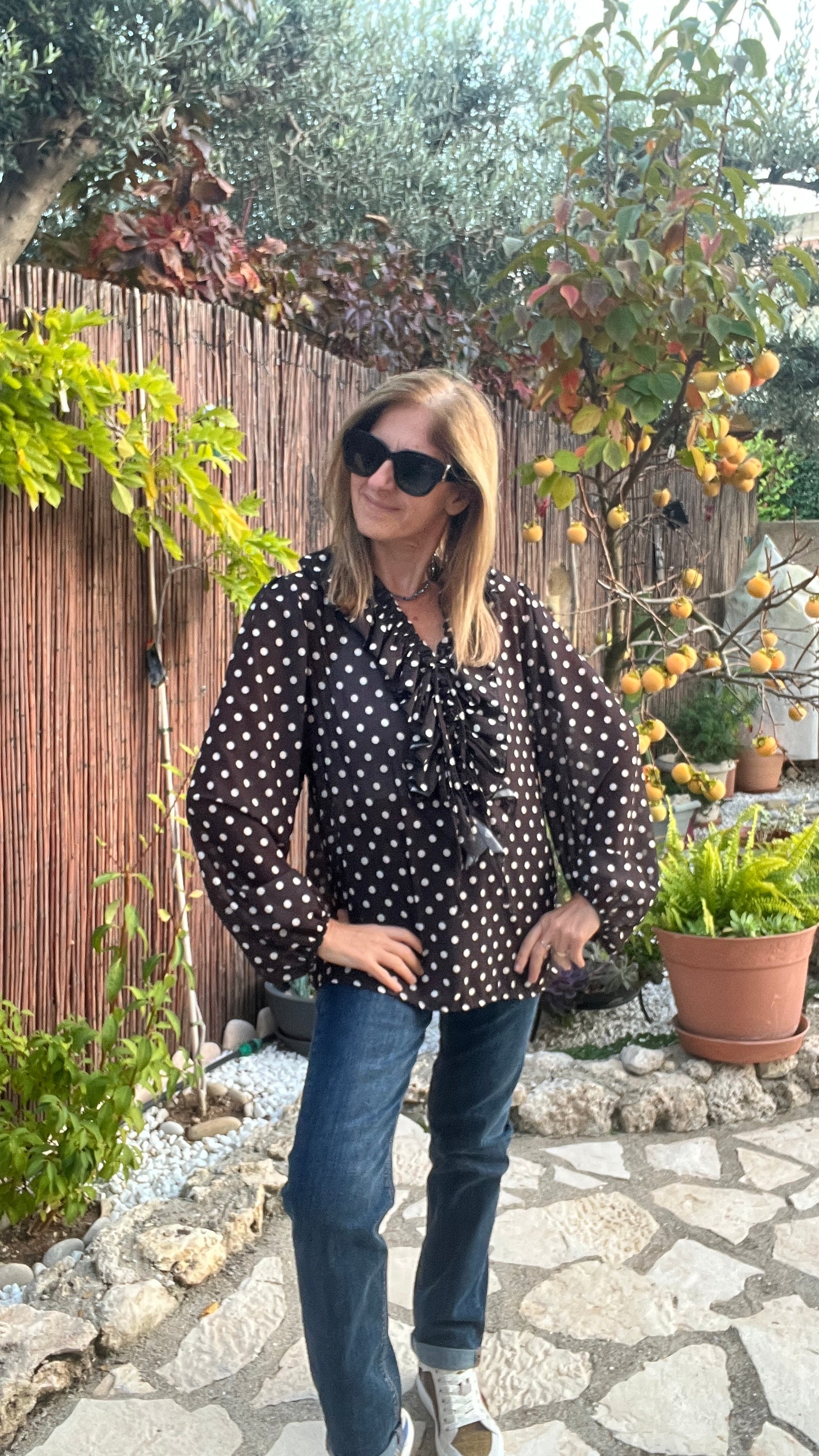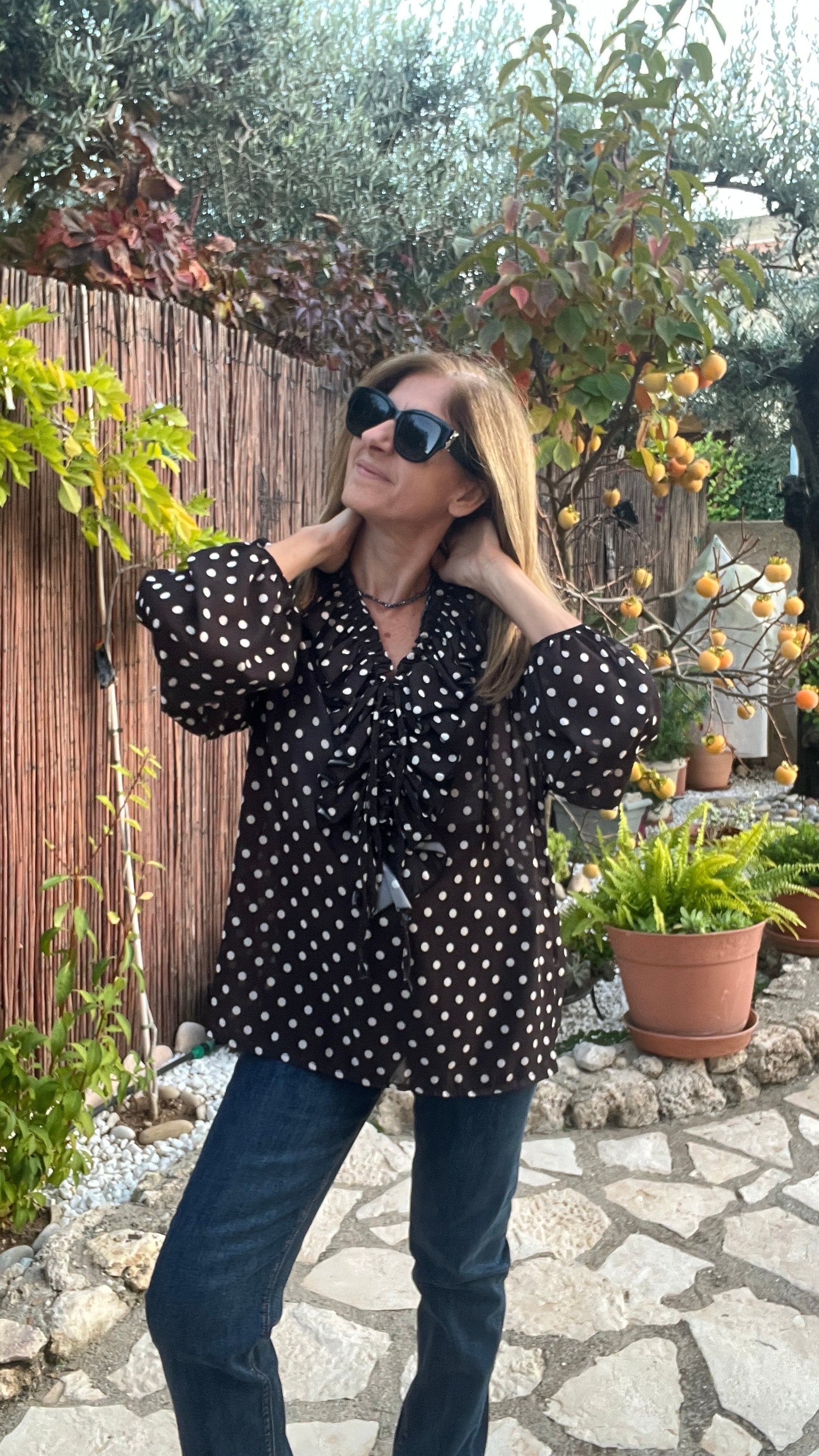 CHEMISIER A POIS CHOCOLAT/BEIGE "FROU-FROU"
