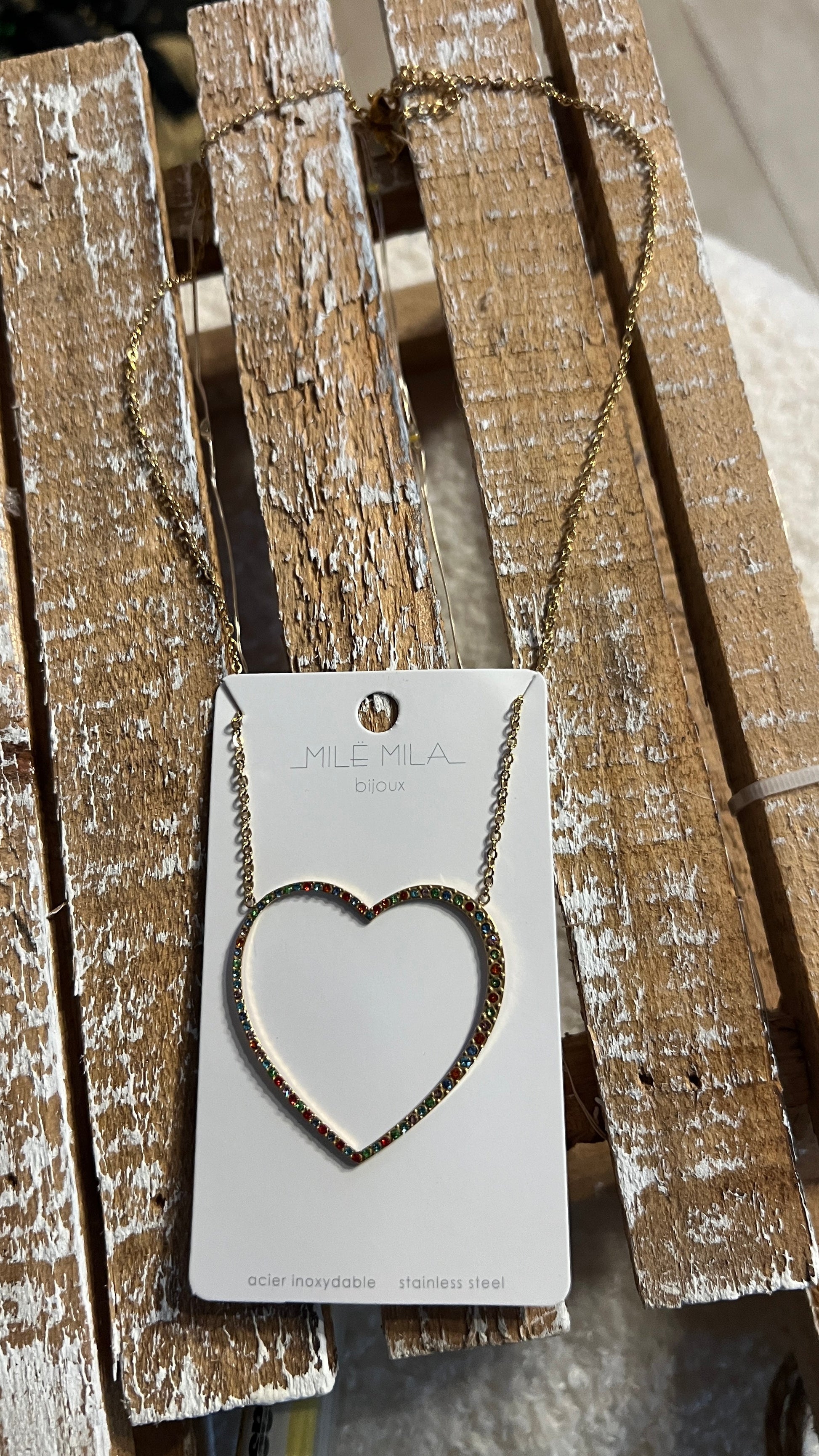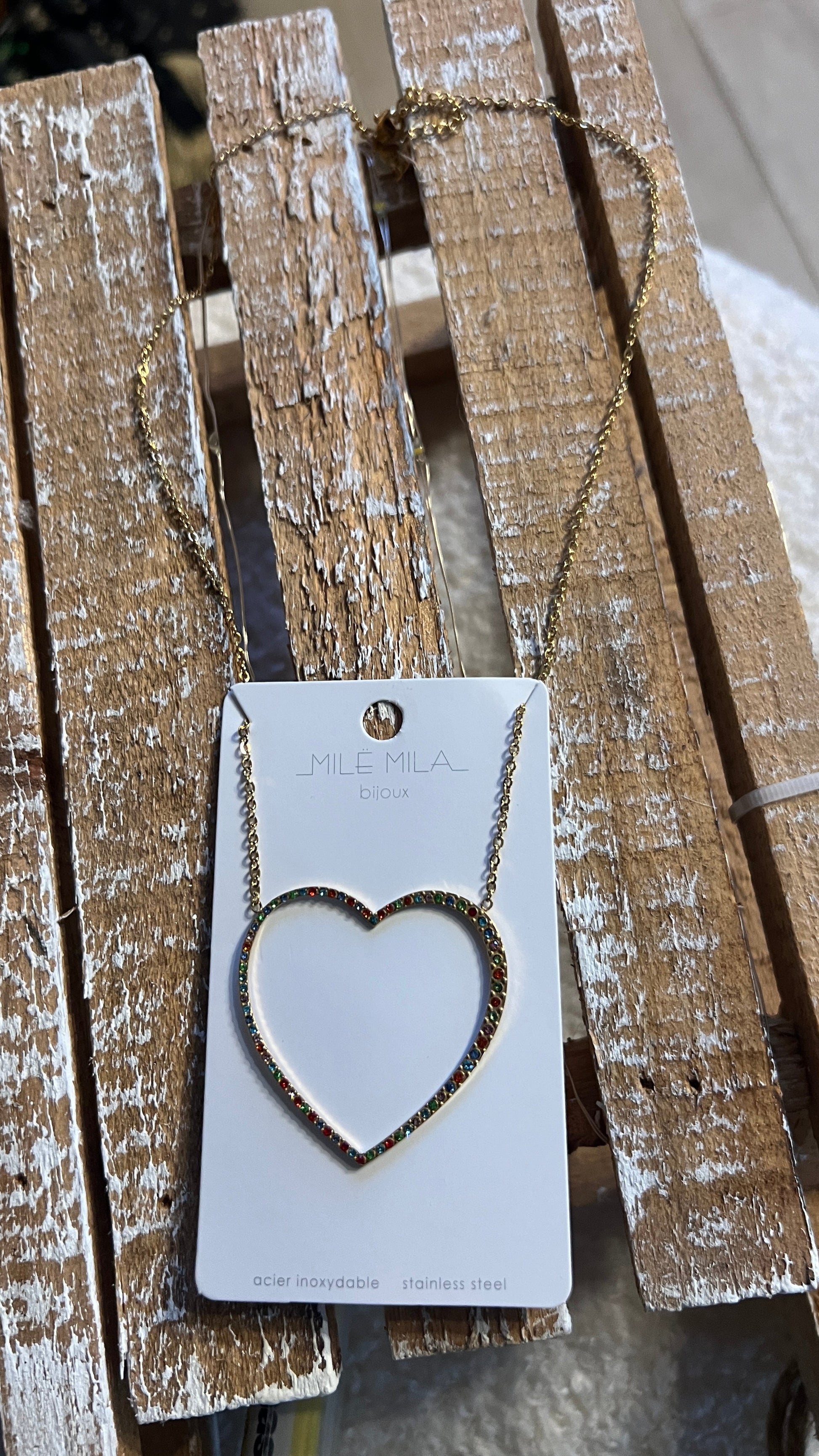 COLLIER DORE GRAND COEUR MULTICOLORE "MILE MILA"