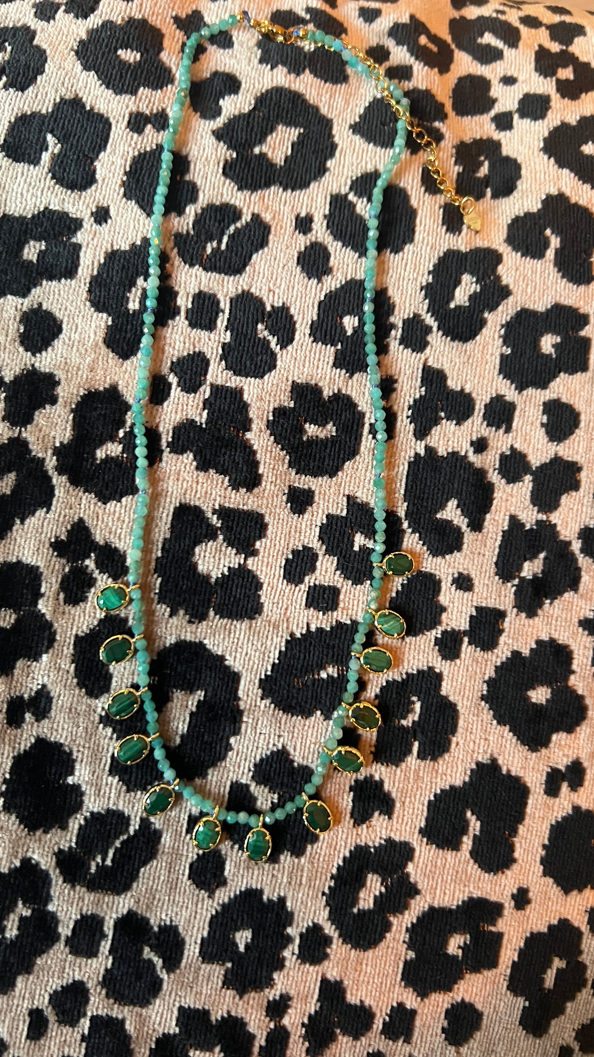 Le collier Habaha Paris perles turquoise et médaillons émeraude est une pièce lumineuse et sophistiquée, pensée pour les femmes qui aiment les bijoux élégants au caractère affirmé.