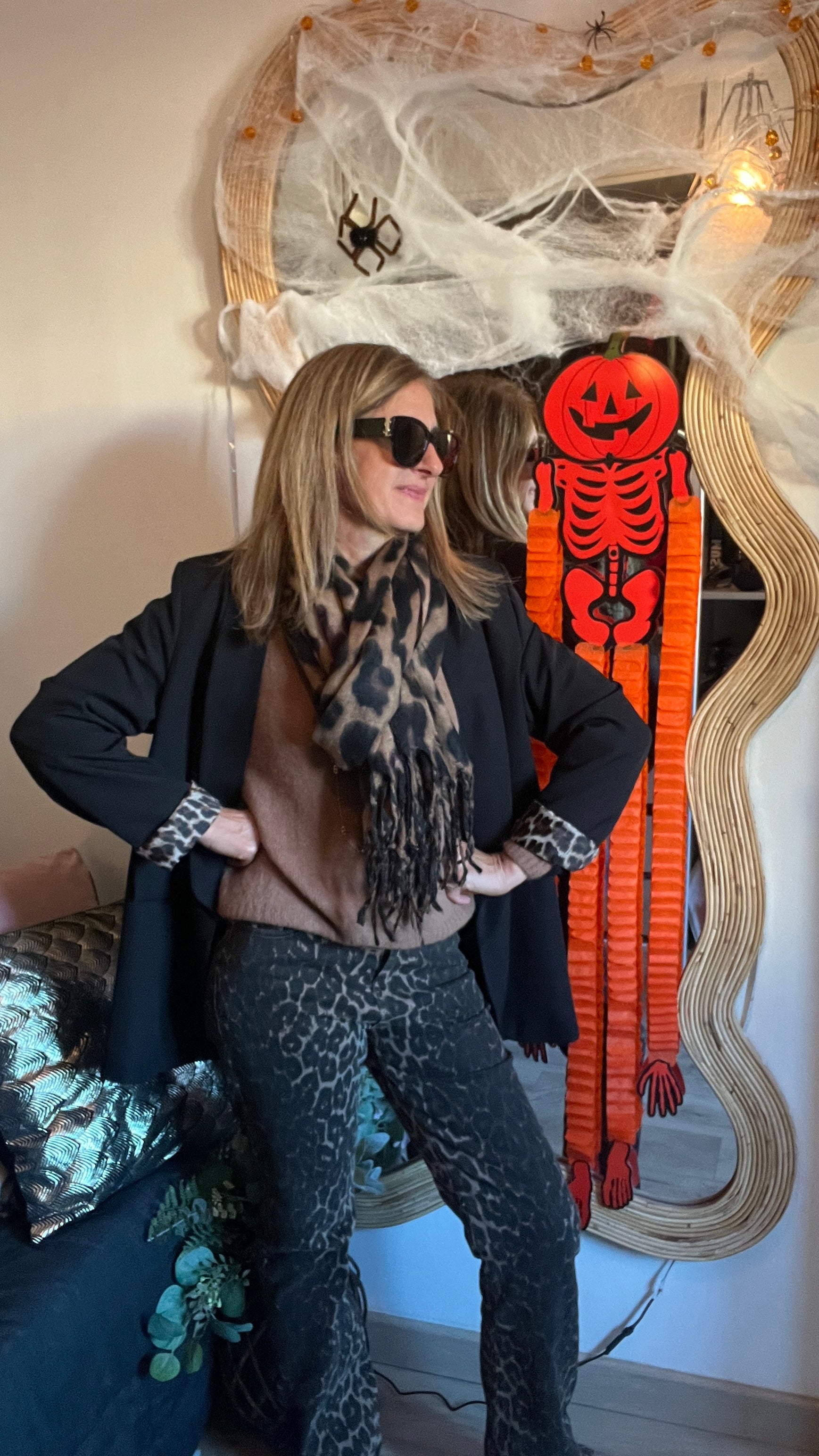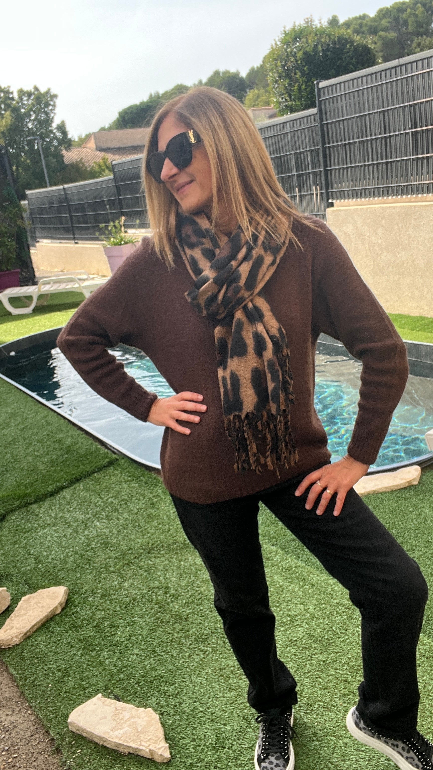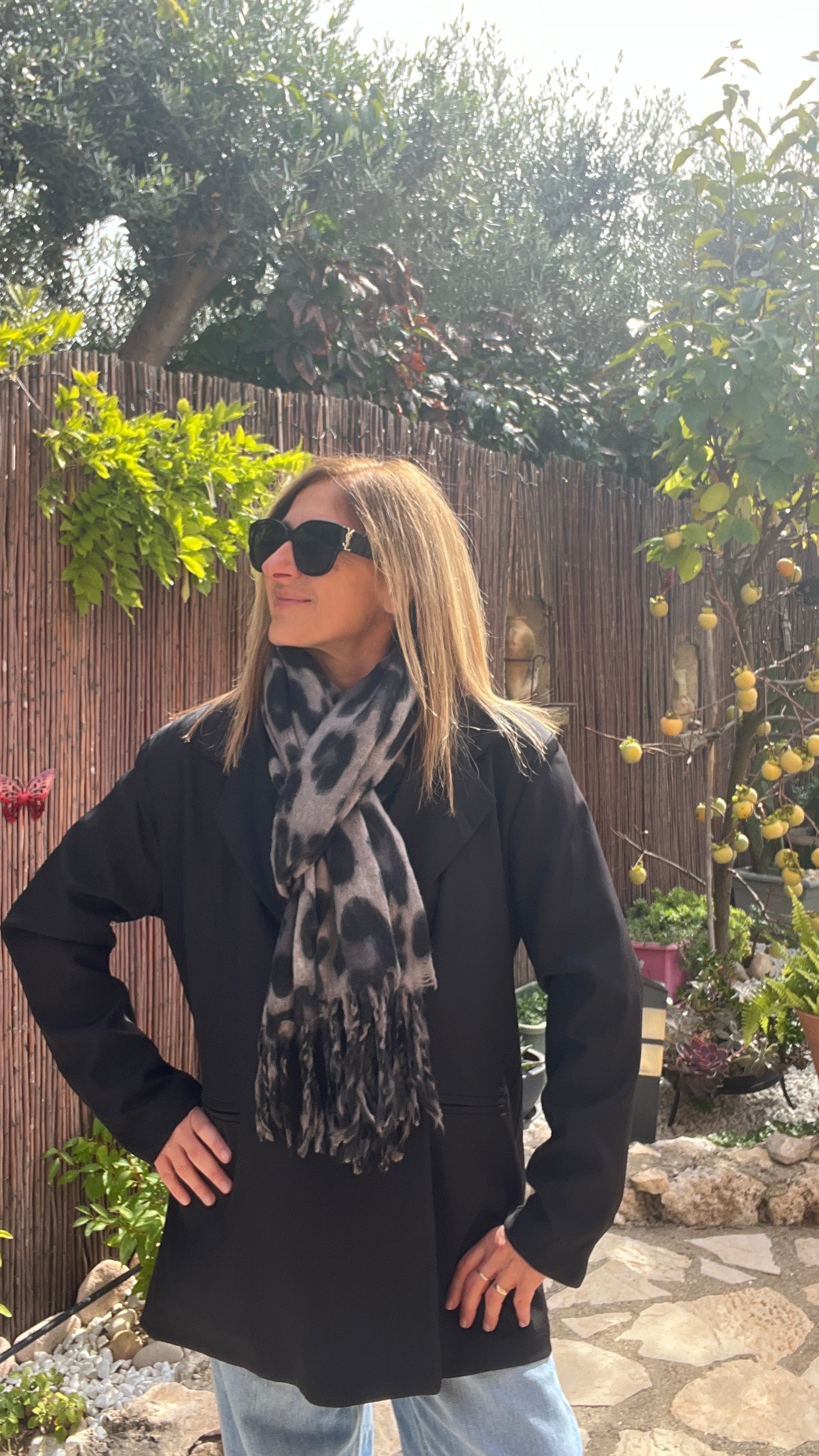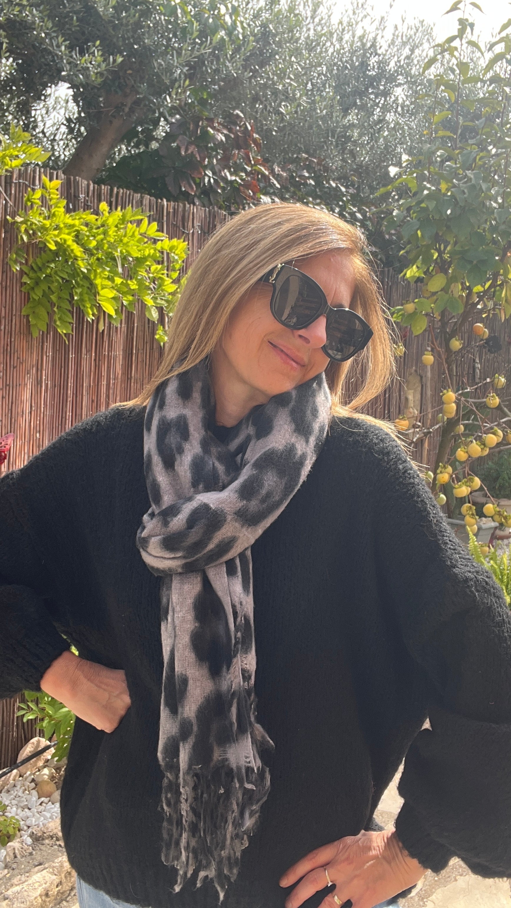 Découvrez l'écharpe léopard Camel & noire ou léopard gris & noire, elle combine l'élégance du motif léopard avec la chaleur, tout en ajoutant une touche de couleur plus subtile avec le Camel/noir ou le gris/noir. Ce motif apporte du caractère à l’écharpe tout en étant plus discret et contemporain grâce aux couleurs neutres. Le contraste entre le camel et le noir ou le gris et le noir donne un effet visuel dynamique, tout en restant élégant.