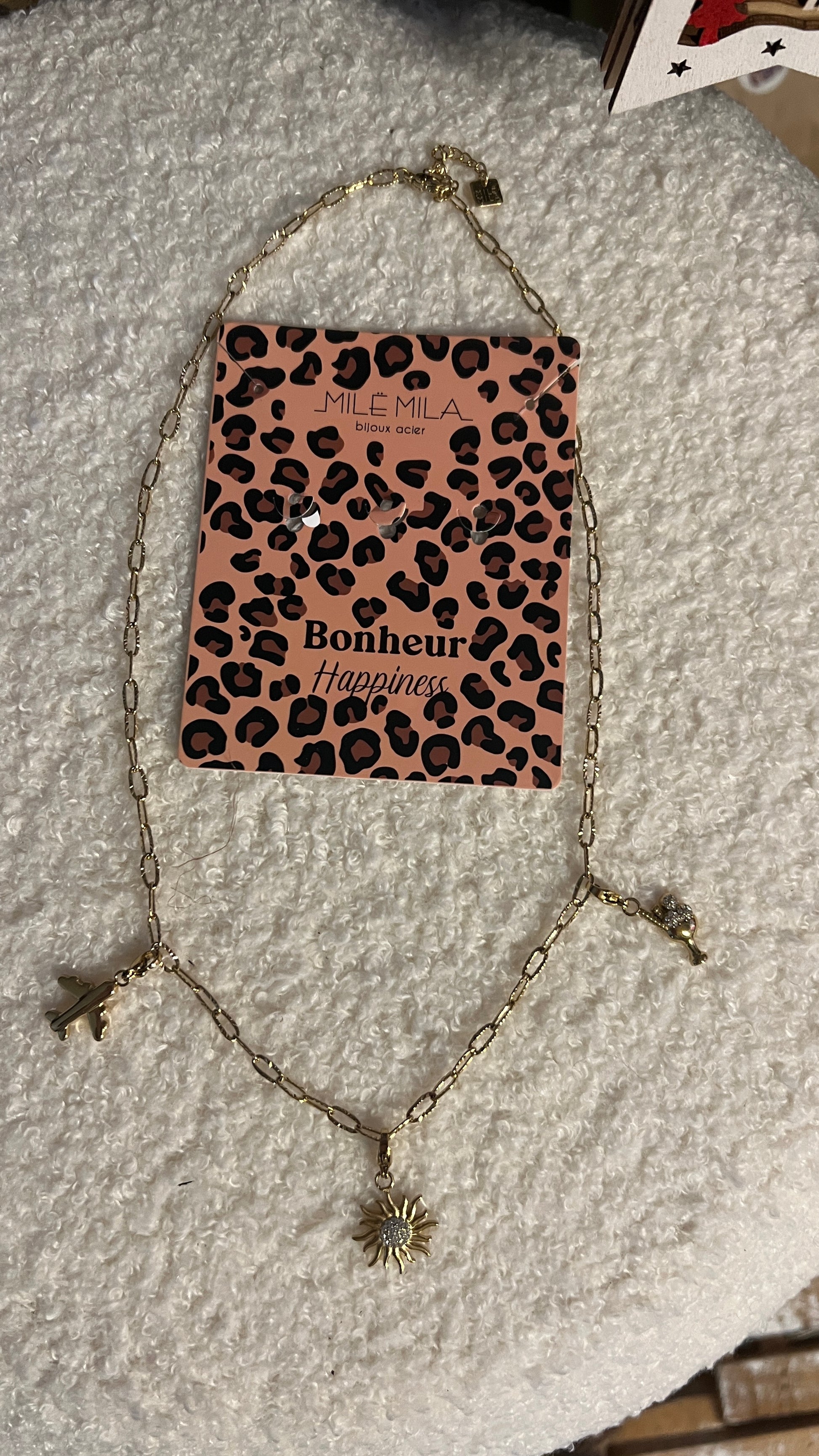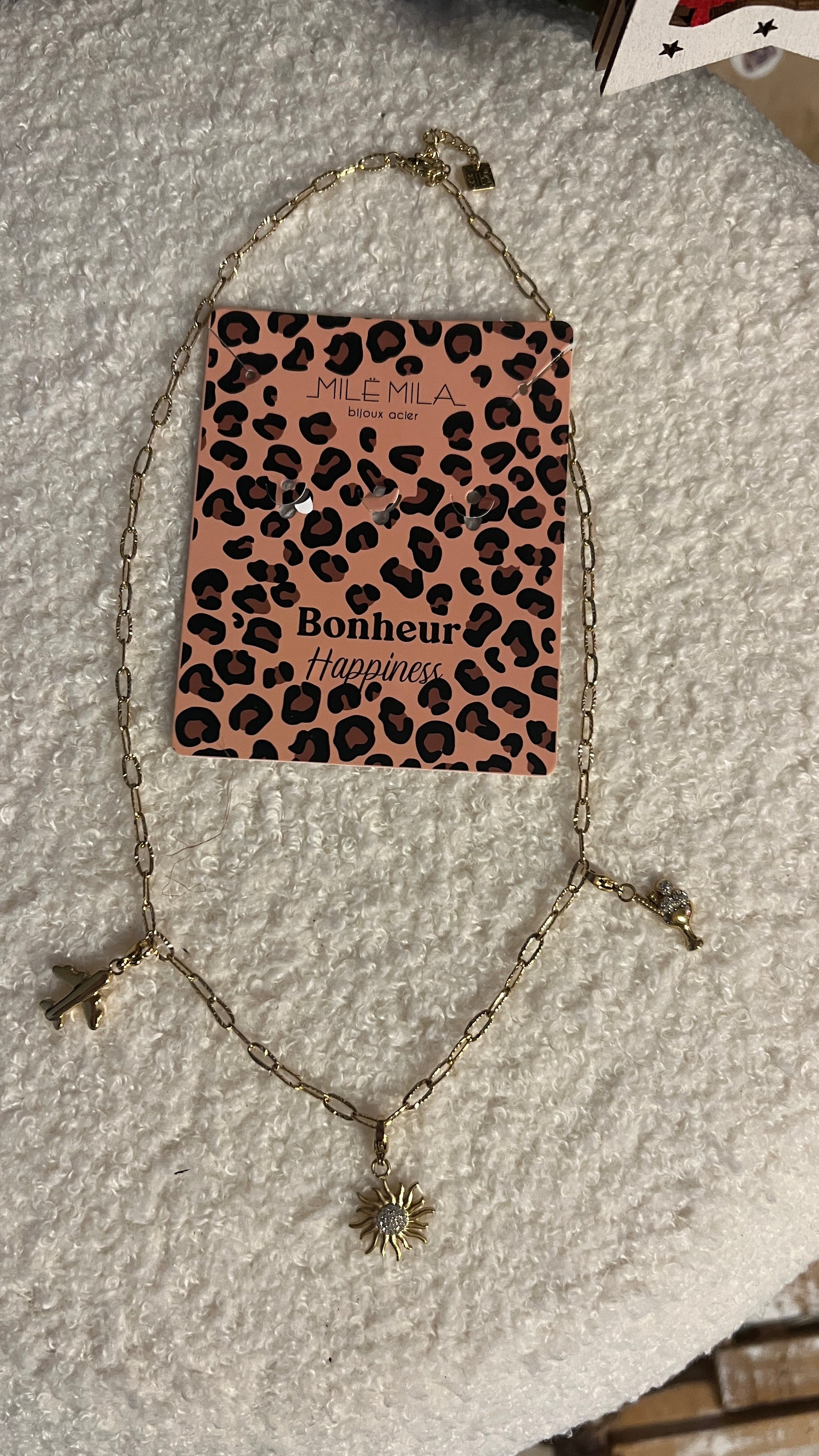 COLLIER DORE MAILLONS & CHARM'S HAPPINESS "MILE MILA"