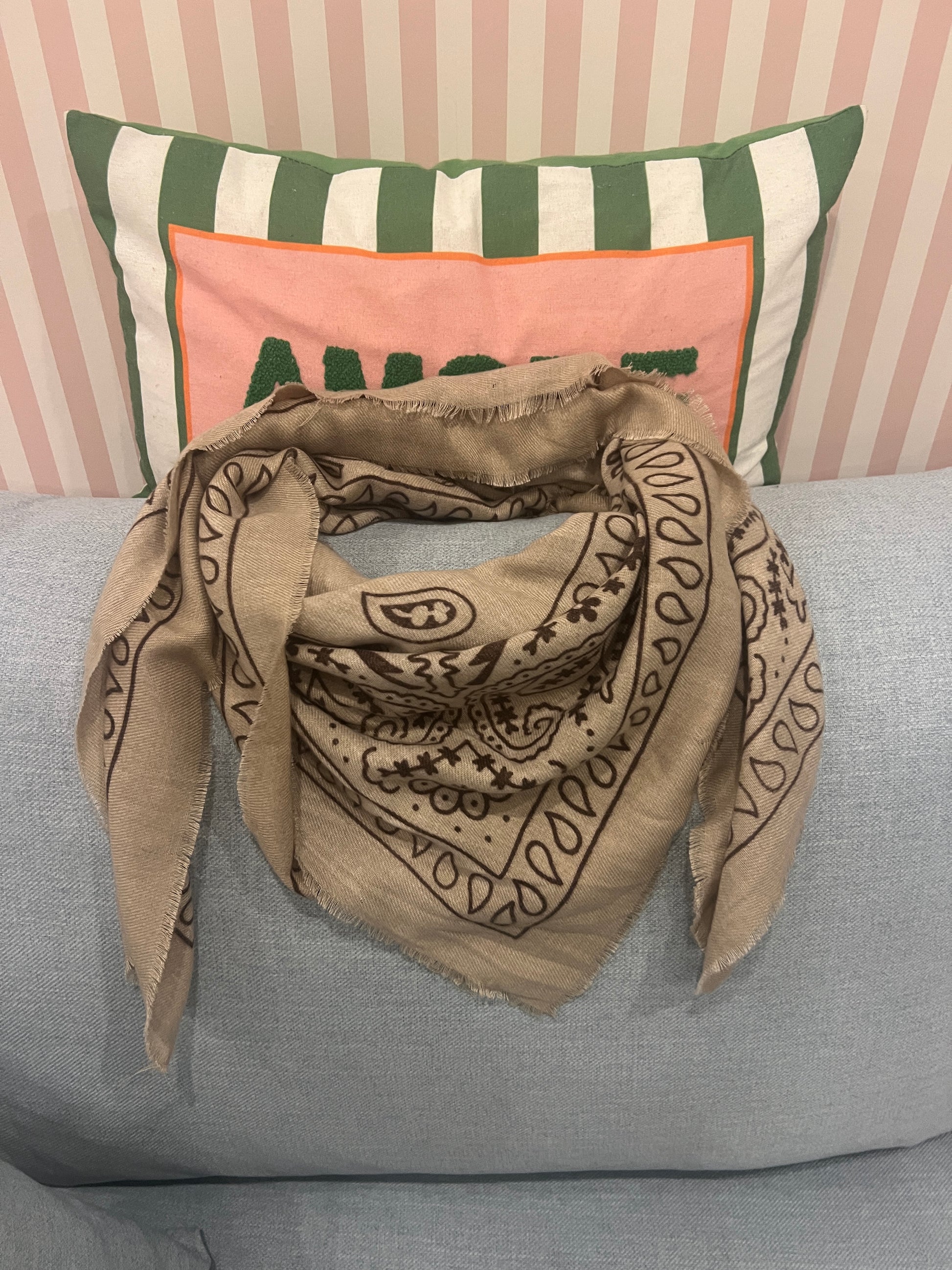 Sublimez vos tenues avec ce foulard grand carré, un accessoire doux et chaleureux idéal pour la saison automne/hiver. indispensable pour un look moderne et audacieux. Son motif bandana revisité disponible en plusieurs coloris. Il apporte une touche à la fois chic et décontractée, idéale pour toutes les occasions. Grâce à son format généreux, ce foulard peut se porter de multiples façons : autour du cou, dans les cheveux, en ceinture ou même accroché à un sac. Léger et élégant, il rehausse instantanément vos looks du quotidien conçu pour allier confort et élégance, il apporte une touche tendance et cozy à toutes vos tenues.