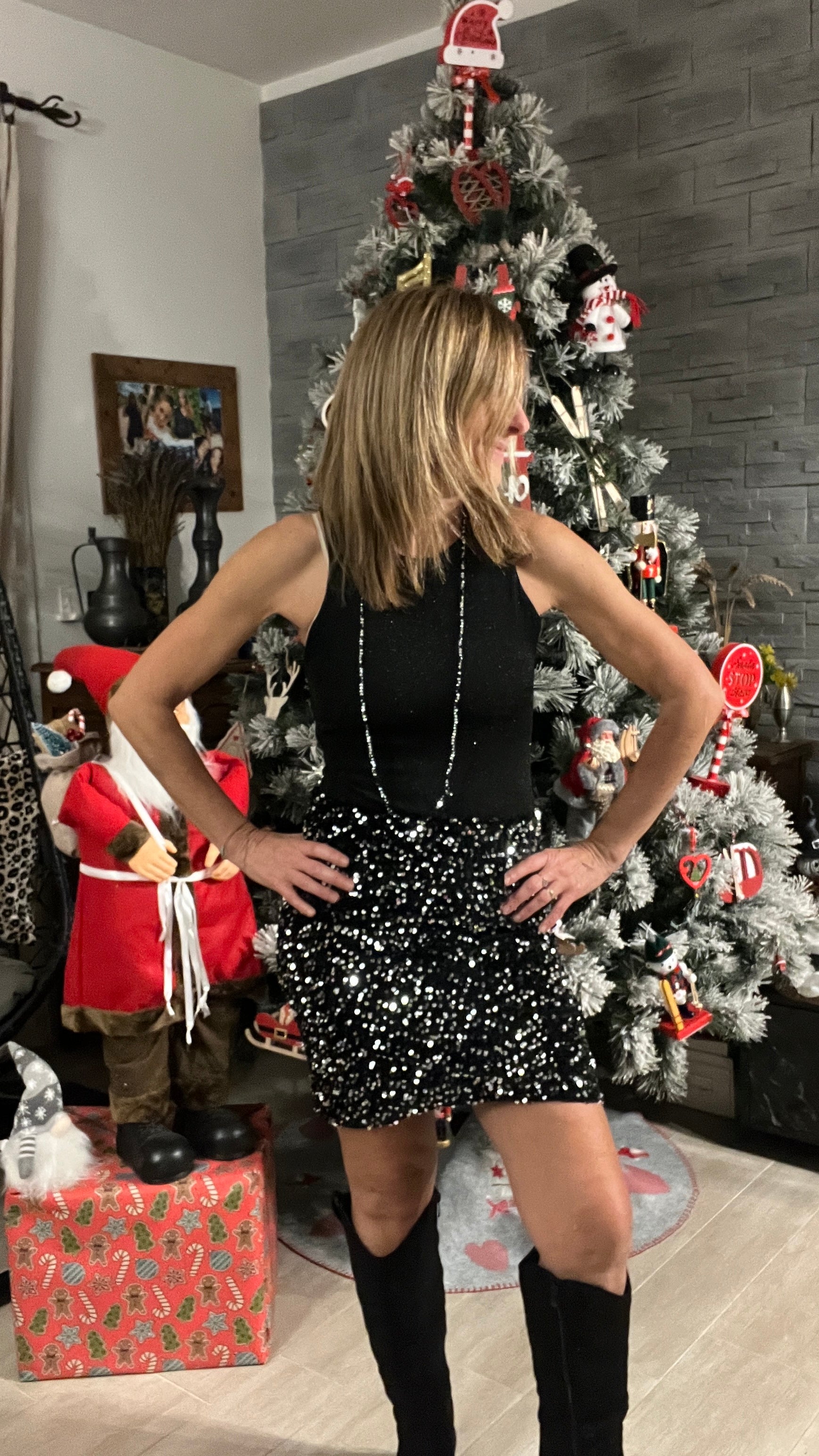 JUPE COURTE NOIRE/ARGENTEE A SEQUINS
