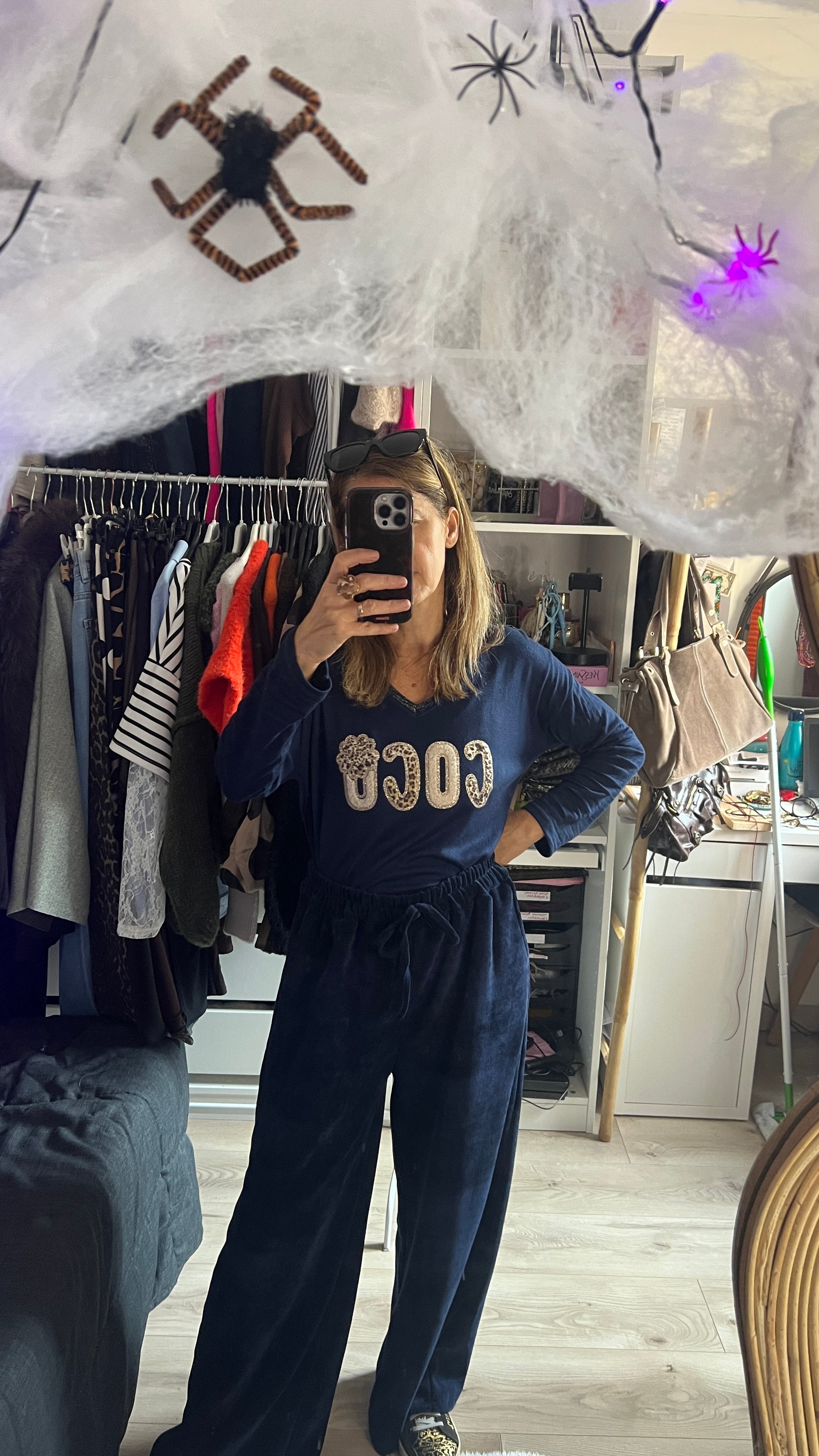 PANTALON FLUIDE VELOURS "BLEU MARINE"