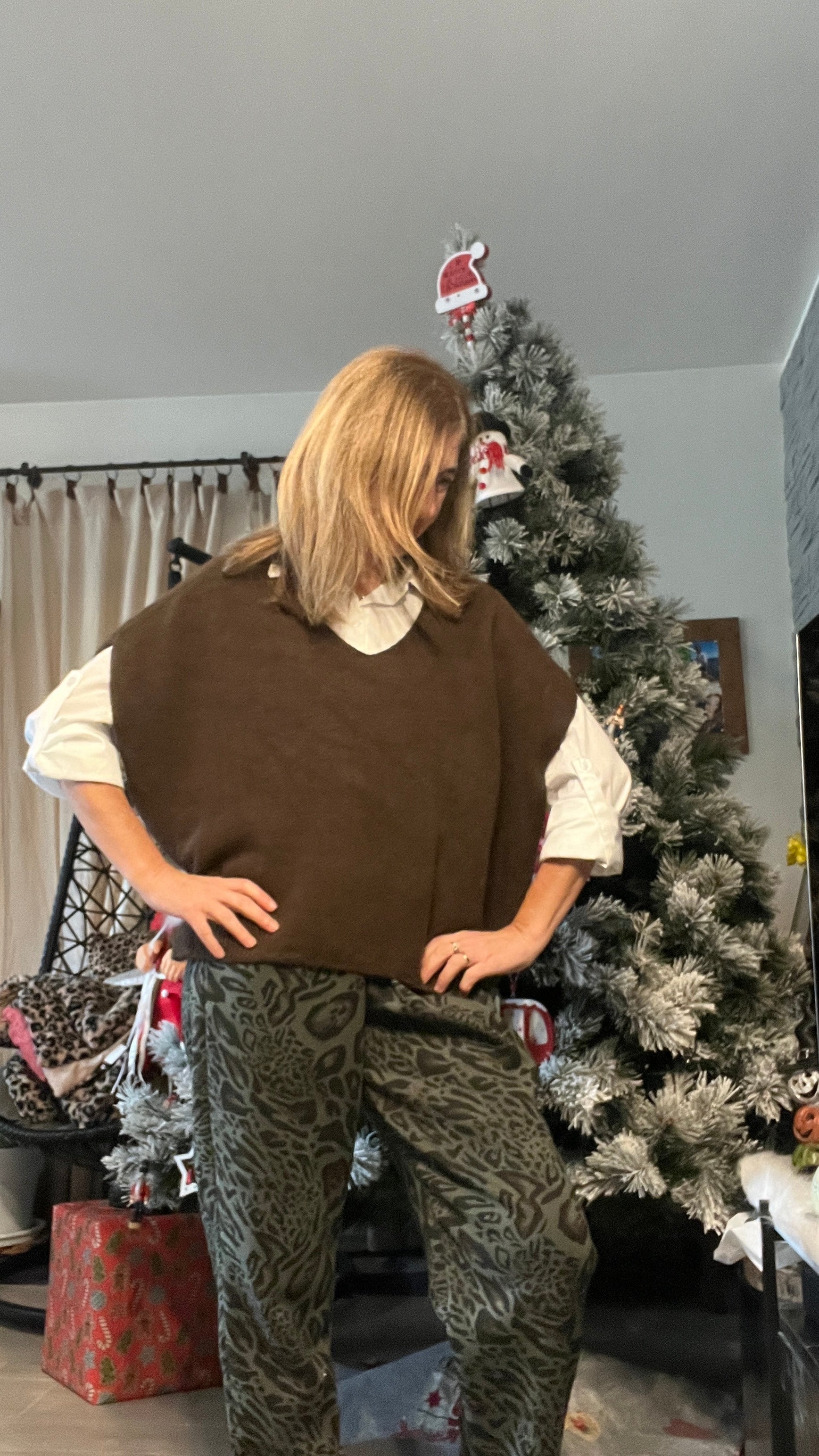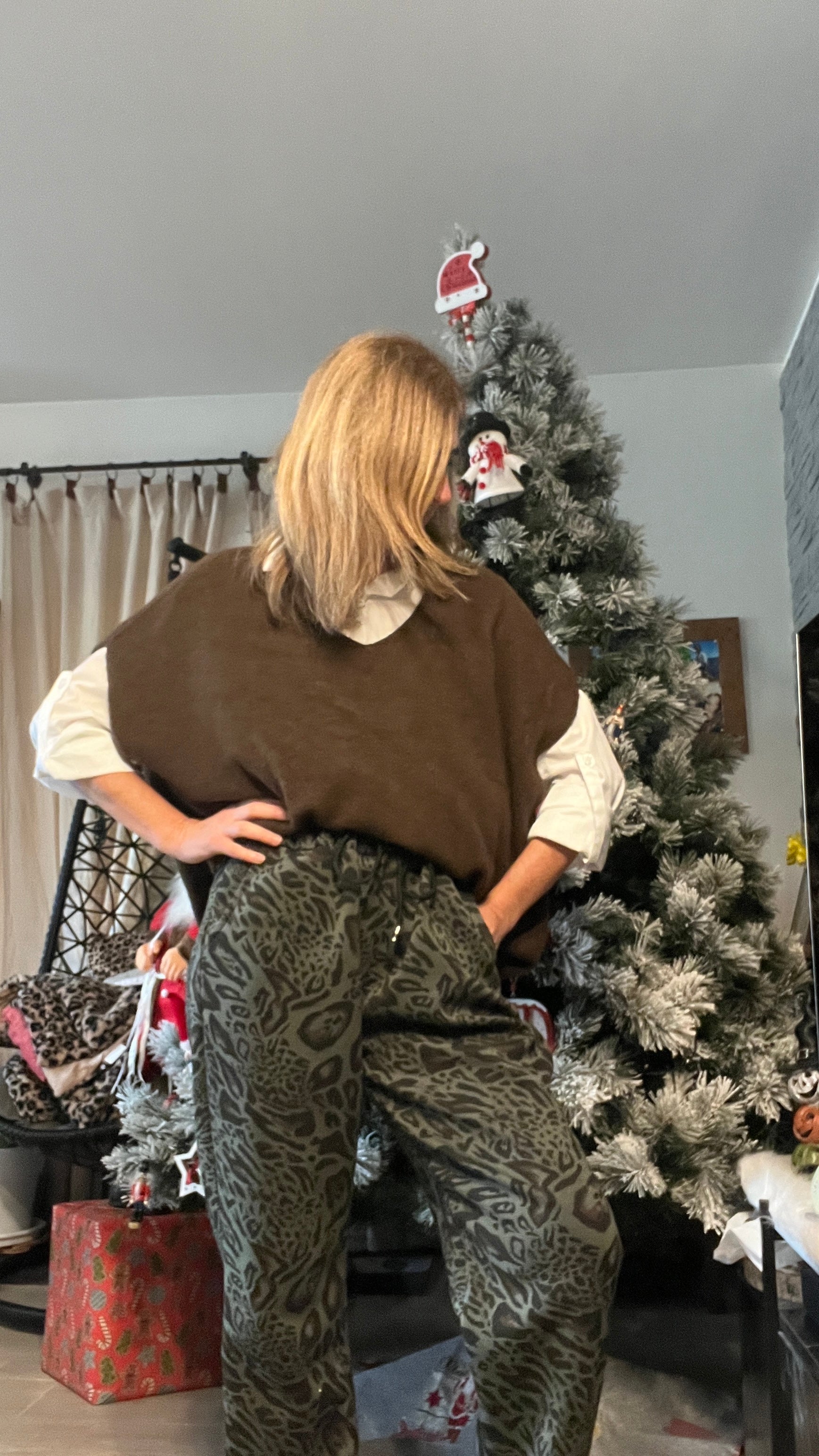 Adopte un look audacieux et tendance avec ce pantalon léopard kaki, noir, chocolat style jogging chic. Son imprimé léopard revisité dans des tons kaki profonds et noir apporte une touche sauvage mais sophistiquée, idéale pour celles qui veulent se démarquer sans en faire trop.
