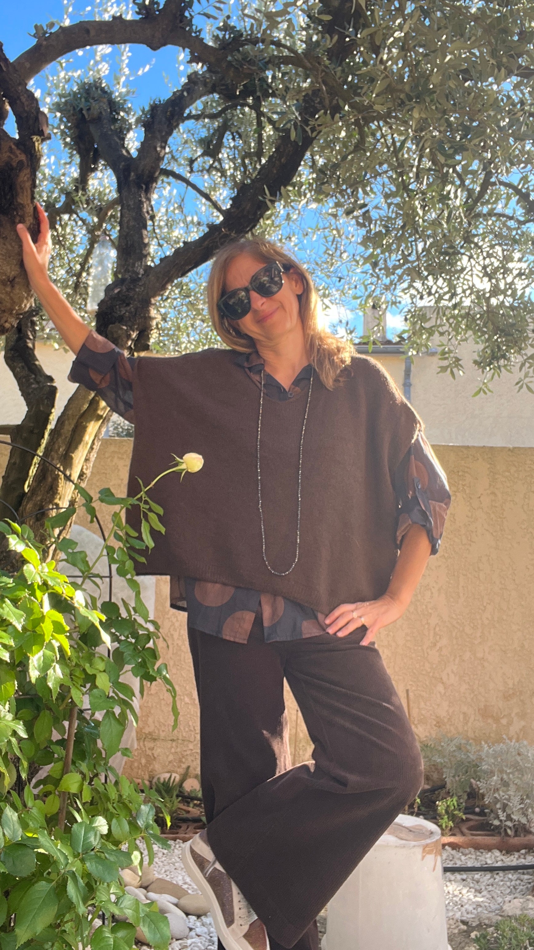 Sa couleur chocolat profonde apporte chaleur et élégance à vos tenues, idéale pour les saisons automne-hiver. Facile à assortir avec un pull crème ou une chemise oversize, ce pantalon velours deviendra un indispensable du dressing féminin, à la fois confortable, tendance et raffiné.