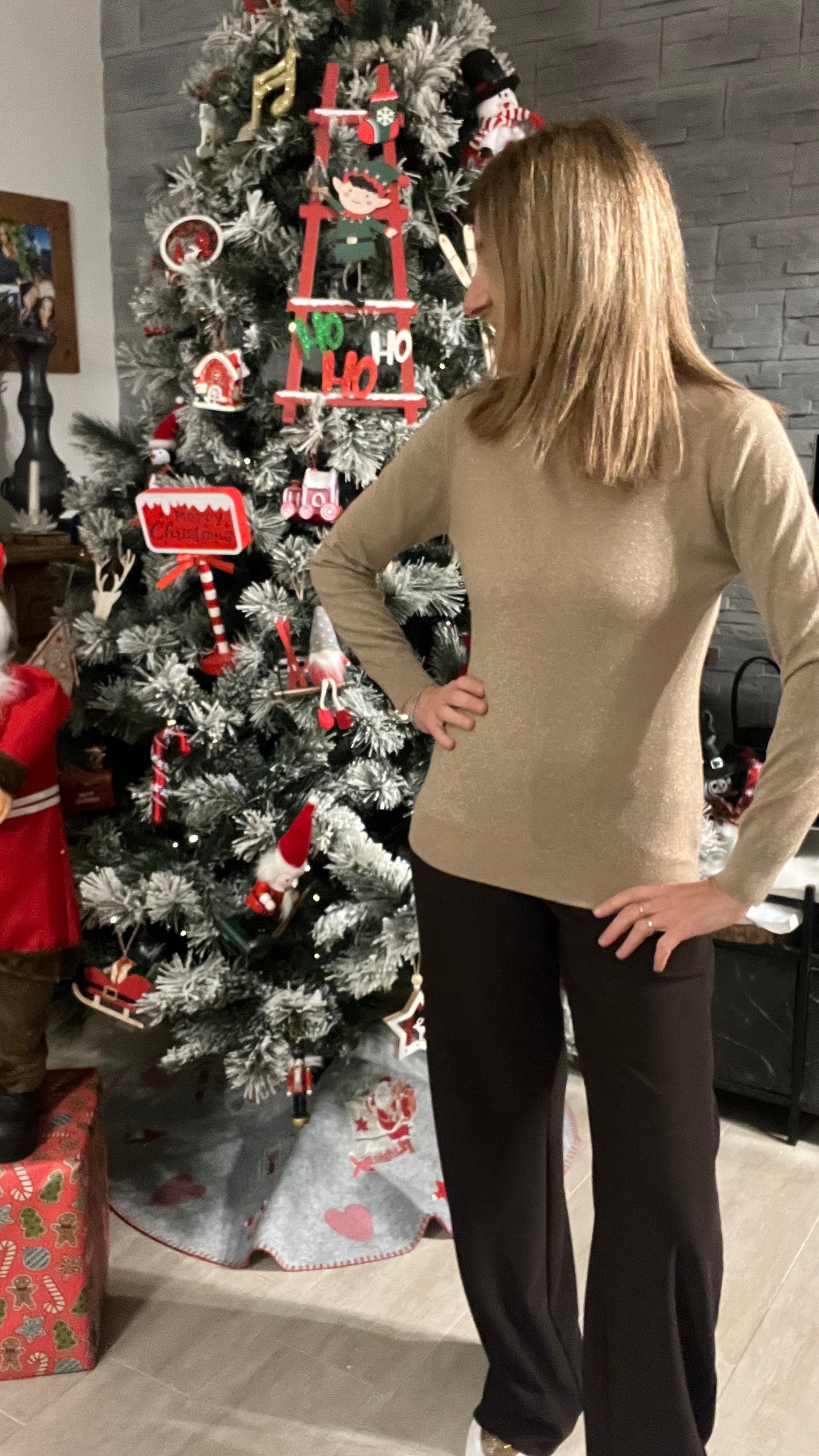 Disponible en cinq couleurs incontournables – noir, rose fuchsia, chocolat chaud, bleu nuit & beige – ce pull se porte facilement avec vos jeans, jupes ou pantalons habillés. Idéal pour le bureau, les sorties entre amis ou les soirées habillées, il apporte une touche de brillance discrète à toutes vos tenues.