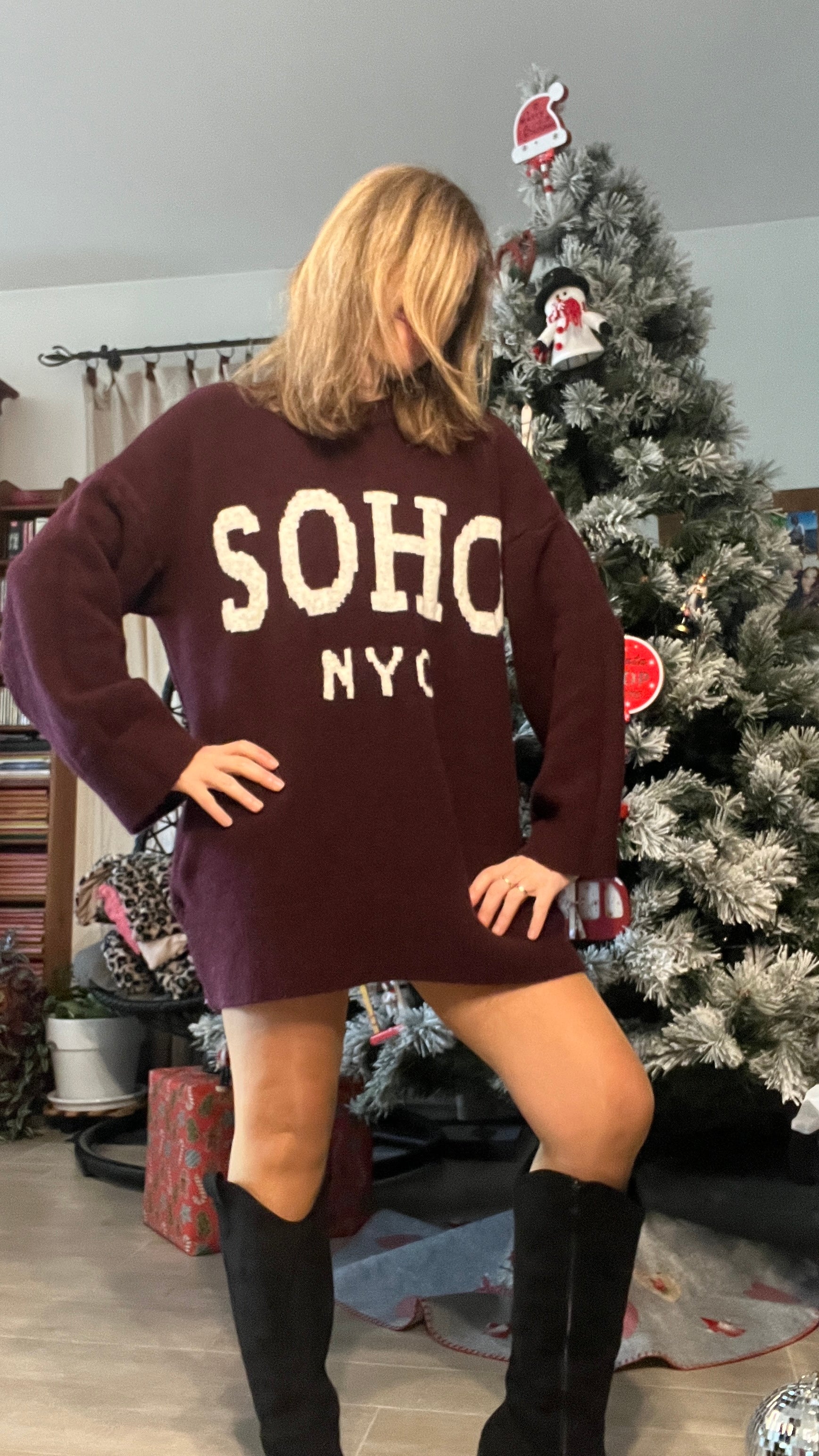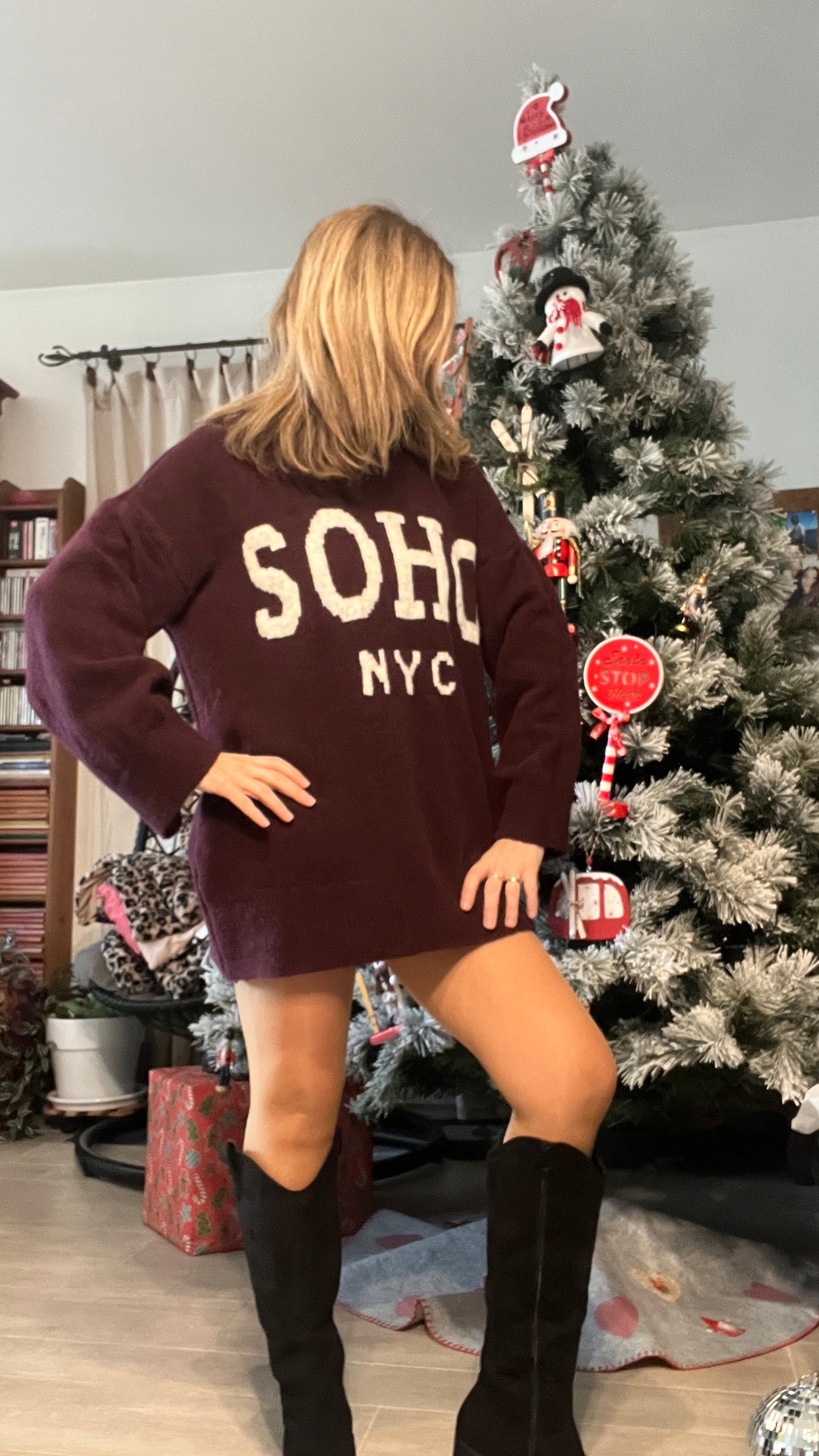 Découvrez le pull tunique Bordeaux Soho avec l'inscription en blanc, un essentiel pour un look urbain et moderne. Conçu en coupe oversize, il offre confort et liberté de mouvement tout en s’adaptant à toutes les morphologies. Son style décontracté permet de le porter comme tunique sur un legging ou un jean, ou comme pull long selon votre silhouette. L’inscription en blanc apporte une touche tendance et graphique qui souligne le côté contemporain du modèle. Idéal pour un style casual chic au quotidien, ce pull tunique se marie facilement avec des sneakers ou des bottines pour un look complet. Parfait pour la saison, il combine confort, style et praticité dans un seul vêtement.