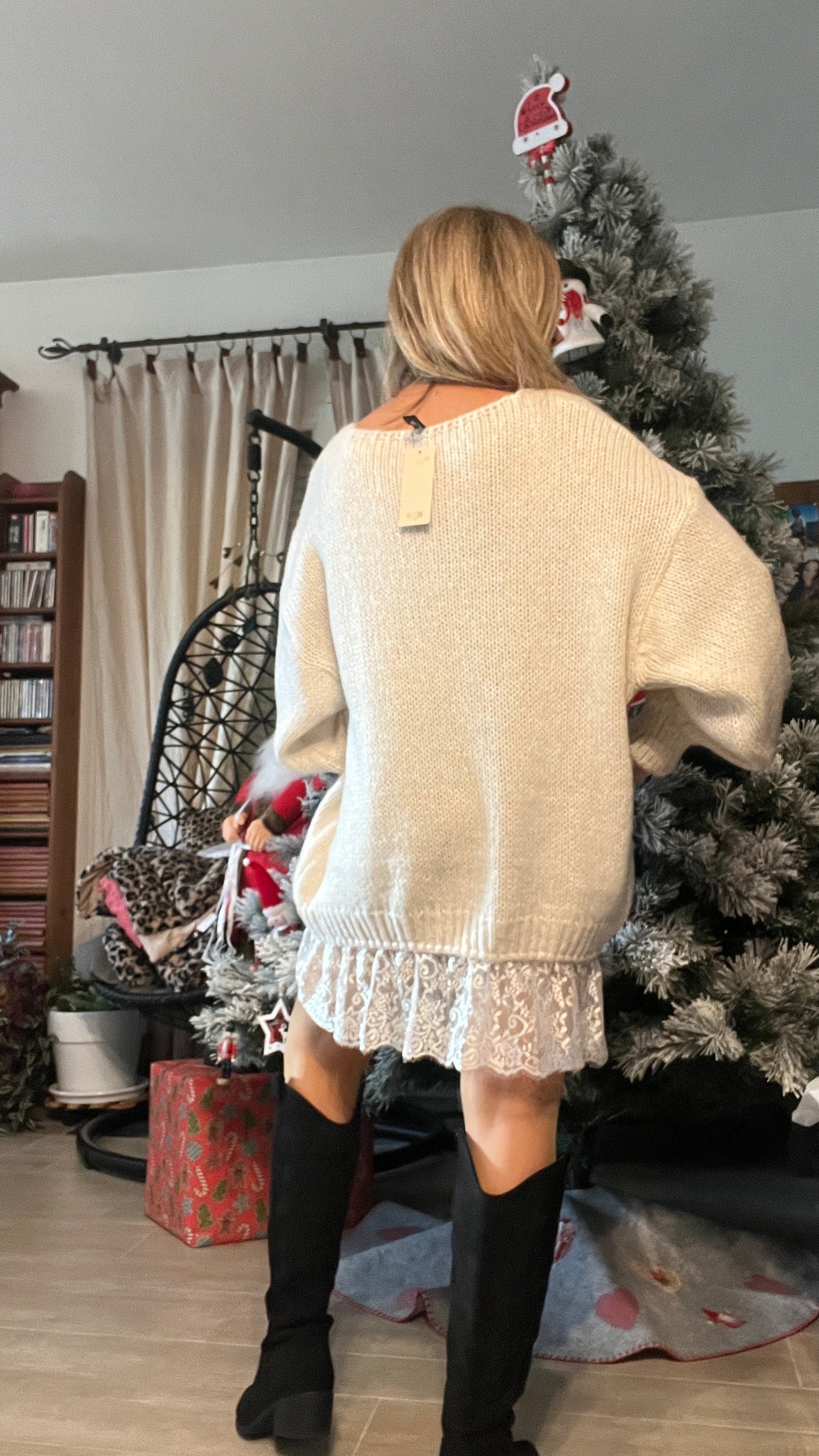 PULL/ROBE TUNIQUE DENTELLE BEIGE