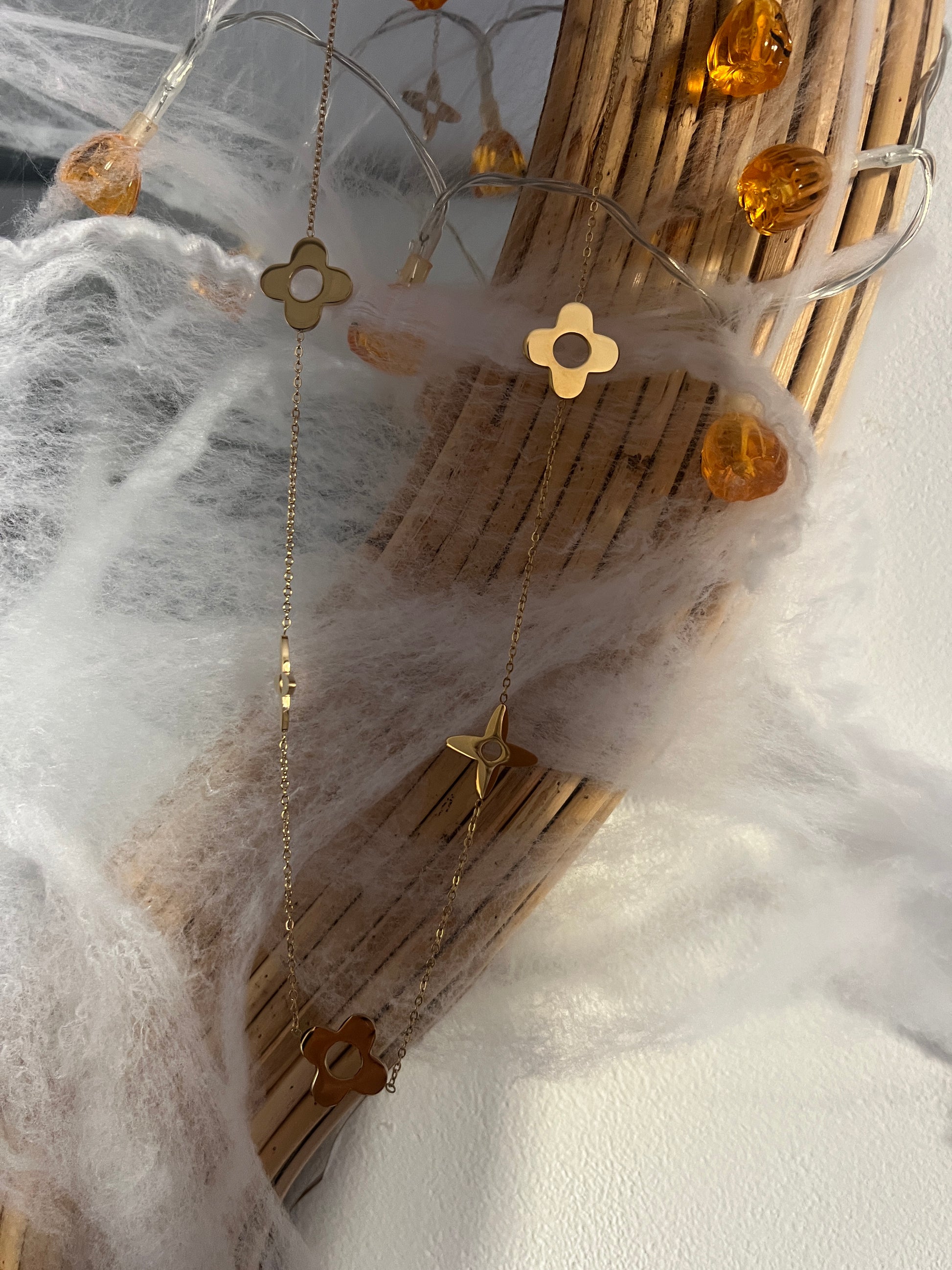 Ce bijou d’exception se distingue par sa chaîne fine dorée à l’éclat subtil, délicatement ponctuée de fleurs dorées réparties tout le long du collier. Chaque fleur, finement travaillée, capte la lumière avec élégance et apporte une touche romantique et sophistiquée à votre tenue.