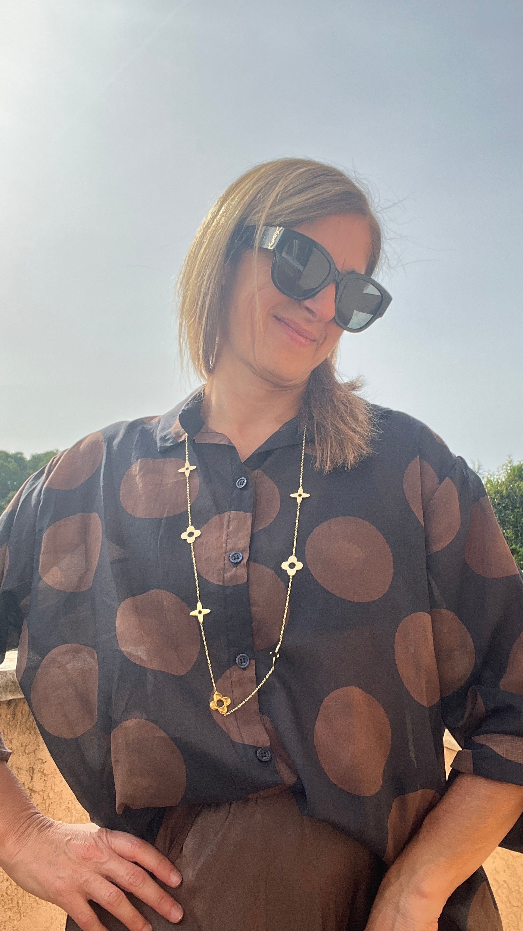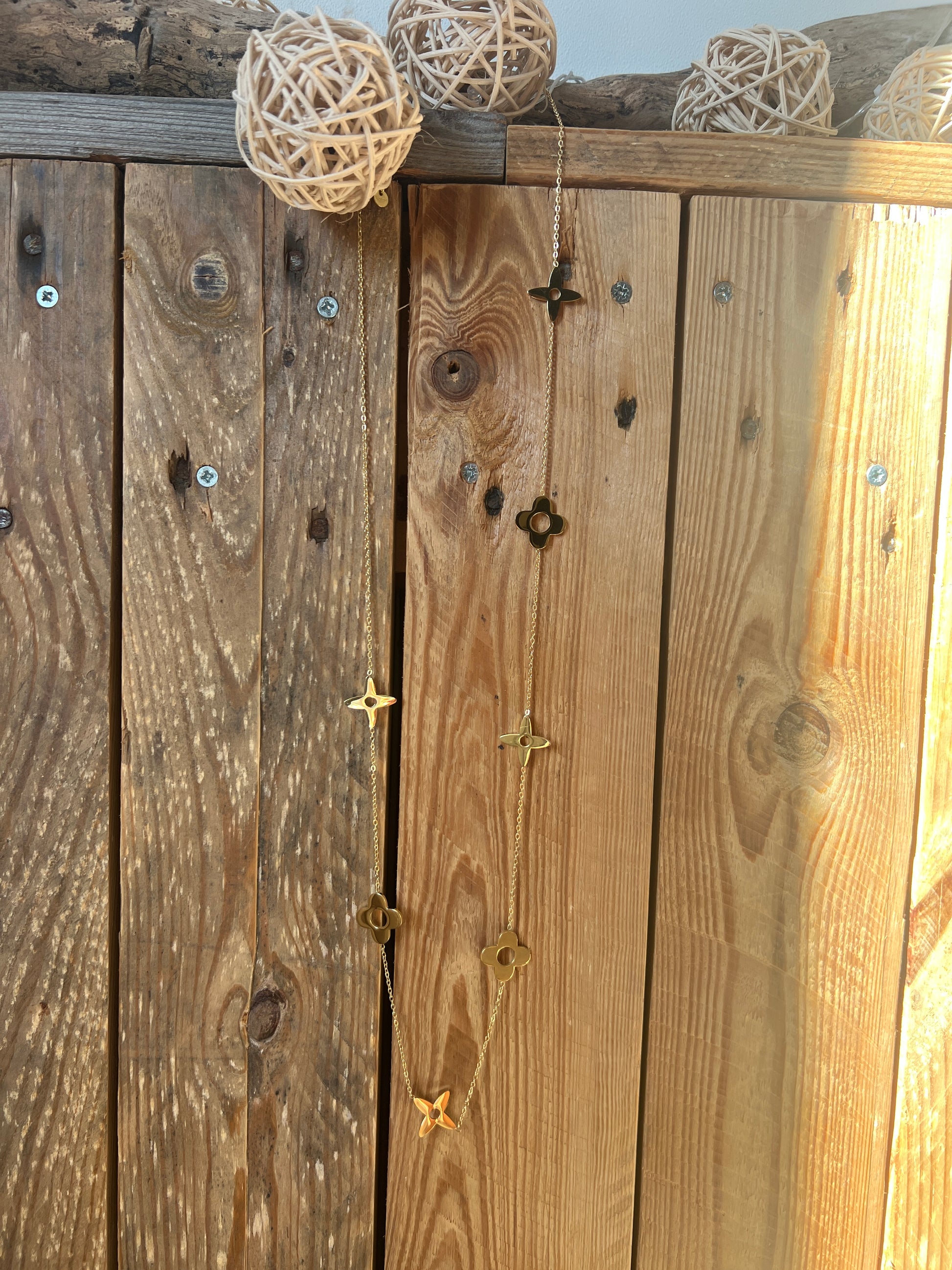 Laissez-vous séduire par le sautoir doré à fleurs dorées, une pièce à la fois féminine, lumineuse et intemporelle.