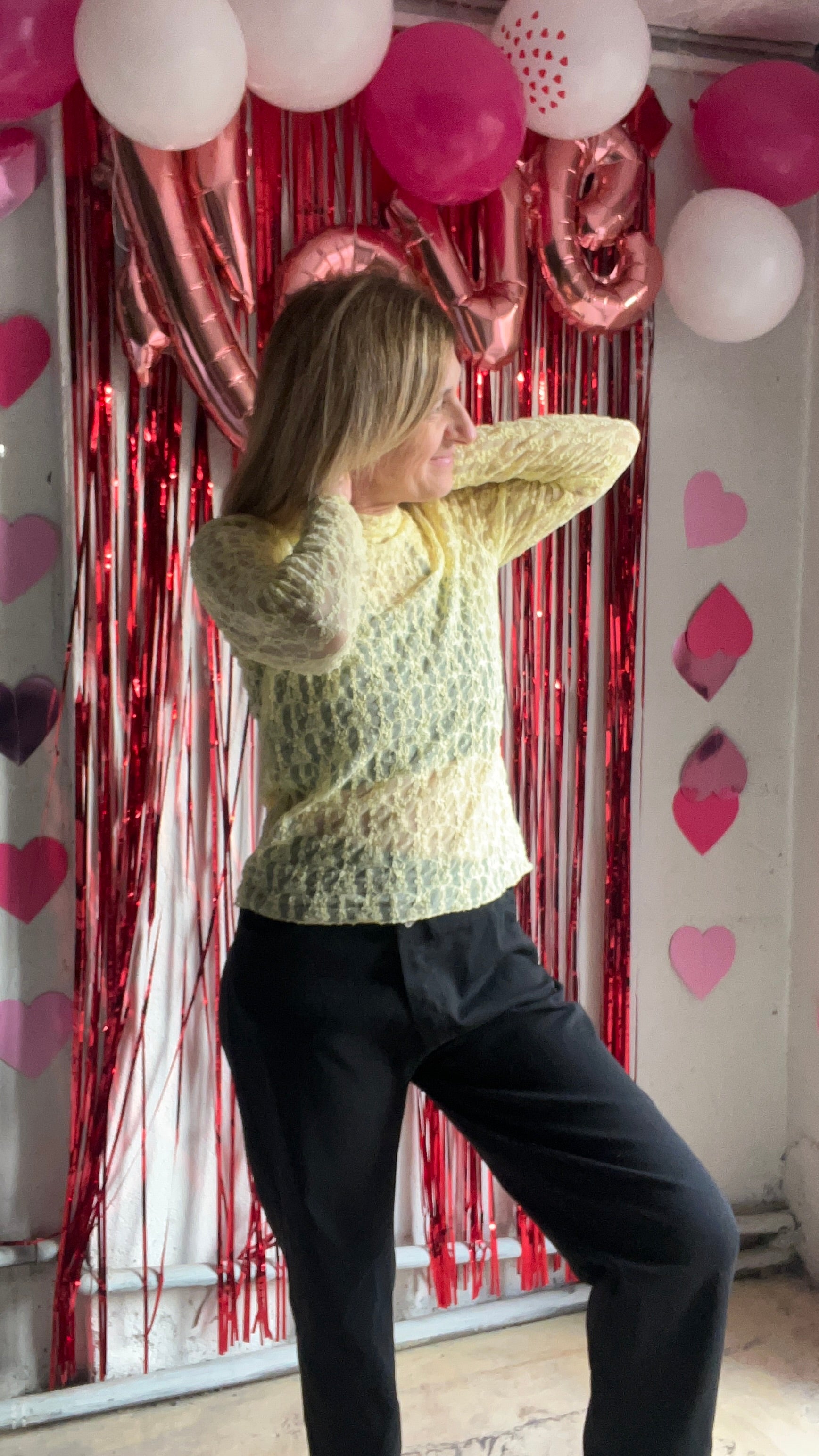 Laisse-toi séduire par l’allure irrésistiblement chic de ce top jaune pâle en dentelle manches longues, une pièce qui allie sophistication et sensualité avec une finesse incroyable. Conçu dans une dentelle délicate, au motif élégant, il offre un jeu de transparence subtil qui met en valeur la silhouette tout en restant parfaitement raffiné.