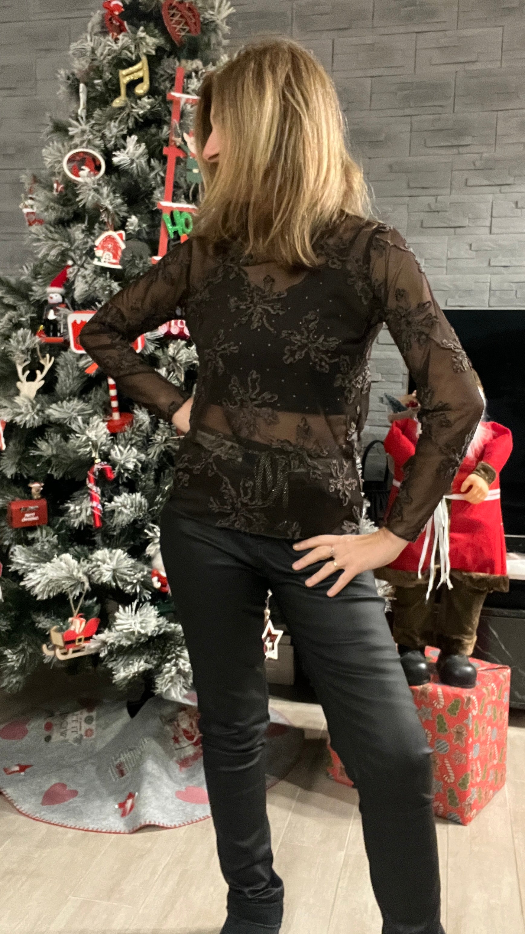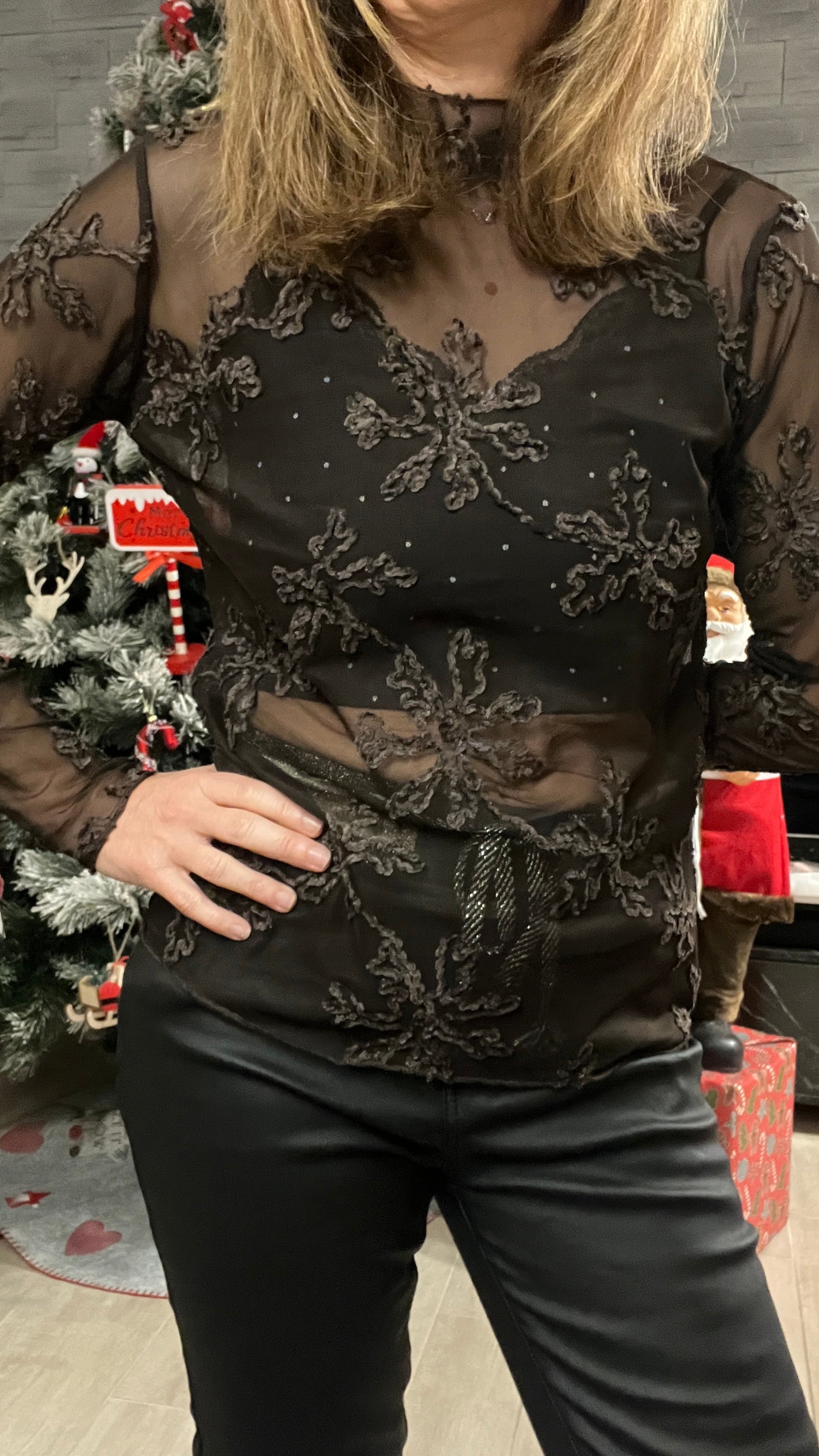 TOP CHOCOLAT EN DENTELLE MANCHES LONGUES