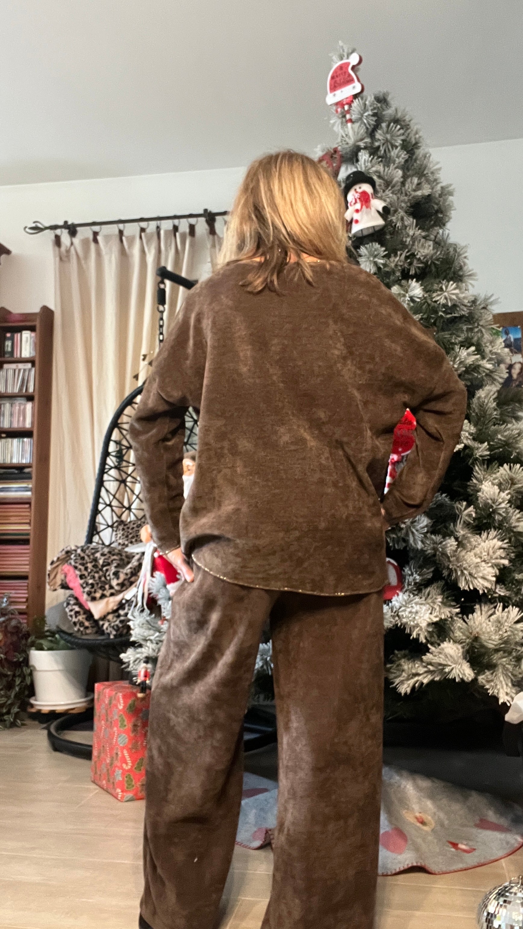 Laisse-toi séduire par ce superbe pull tunique chocolat en velours, à la fois doux, brillant et incroyablement agréable à porter. Sa coupe ample et moderne met la silhouette en valeur tout en offrant un confort parfait. L’inscription “Amour en doré". il ajoute une touche glamour et lumineuse, idéale pour illuminer n’importe quelle tenue. Porté avec un jean, un legging ou une jupe, ce pull tunique devient la pièce incontournable pour un style cosy, tendance et résolument féminin.