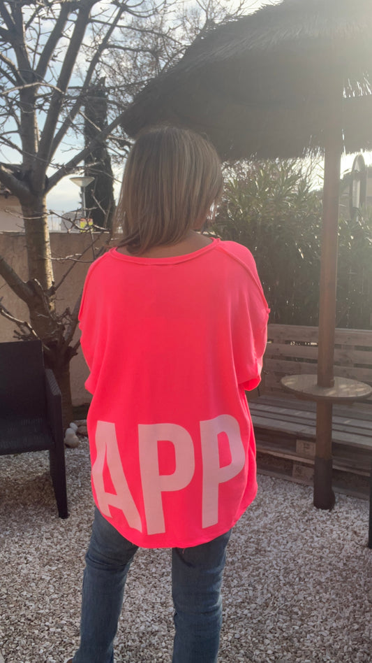 SWEAT ROSE FLUO OVERSIZE HAPPY